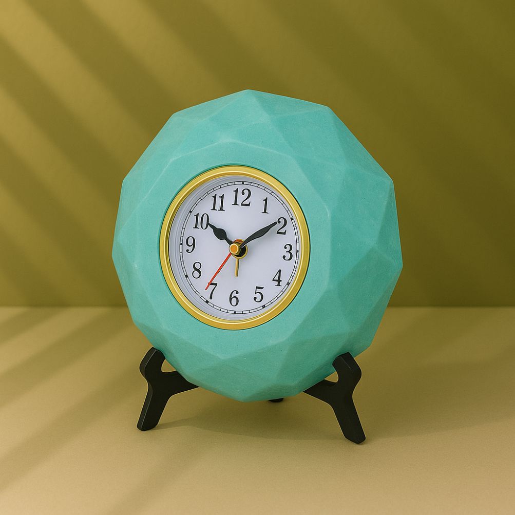 Elevate your workspace with the EcoArt Desk Clock, meticulously crafted from 100% recycled waste. This unique clock is a testament to sustainability and style.